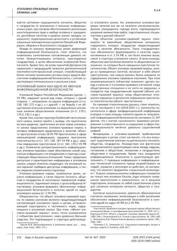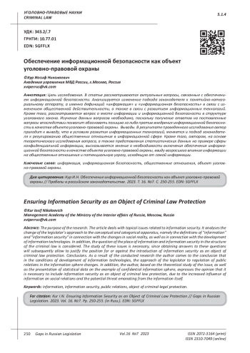 Статья: ОБЕСПЕЧЕНИЕ ИНФОРМАЦИОННОЙ БЕЗОПАСНОСТИ КАК ОБЪЕКТ УГОЛОВНО-ПРАВОВОЙ ОХРАНЫ (2023)