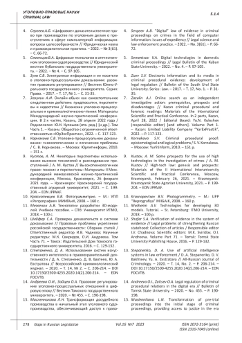 2. Кучин О.С., Кучина Я.О. Ретроспективно-перспективный анализ дефиниции “цифровая криминалистика” // Союз криминалистов и криминологов. - 2021. - № 2. - С. 84-101. EDN: ESVVPS