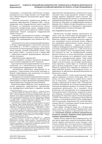 Shurukhnov V.A., Shurukhnov N.G. Specialization of the police of the Russian Empire according to the project of the interdepartmental Commission “On the transformation of the police in the Empire” (1906-1911) // Law and order in the focus of scientific research: collection. scientific works. Vol. 4. - Khabarovsk: Publishing house DVPUPS, 2023. - P. 353-360.