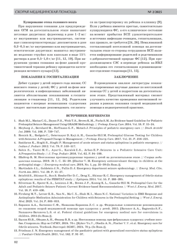 10. 	Firnberg M.T., Lerner E. B., Nan N., Ma C. X., Shah M. I., Mann N. C. National Variation in EMS Response and Antiepileptic Medication Administration for Children with Seizures in the Prehospital Setting // West J. Emerg. Med. 2023. Vol. 24. P. 805-813.