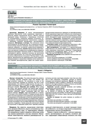 Статья: Административная ответственность как элемент обеспечения правового режима особо охраняемых территорий и объектов (2025)