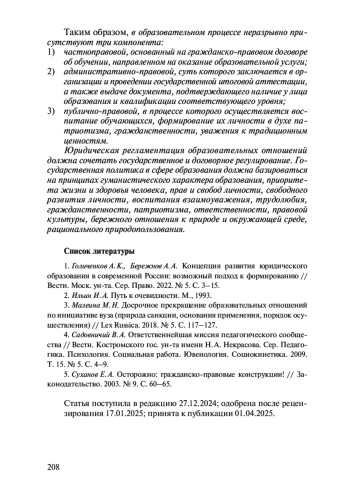 3. Малеина М. Н. Досрочное прекращение образовательных отношений по инициативе вуза (природа санкции, основания применения, порядок осуществления) // Lex Russica. 2018. № 5. С. 117-127.