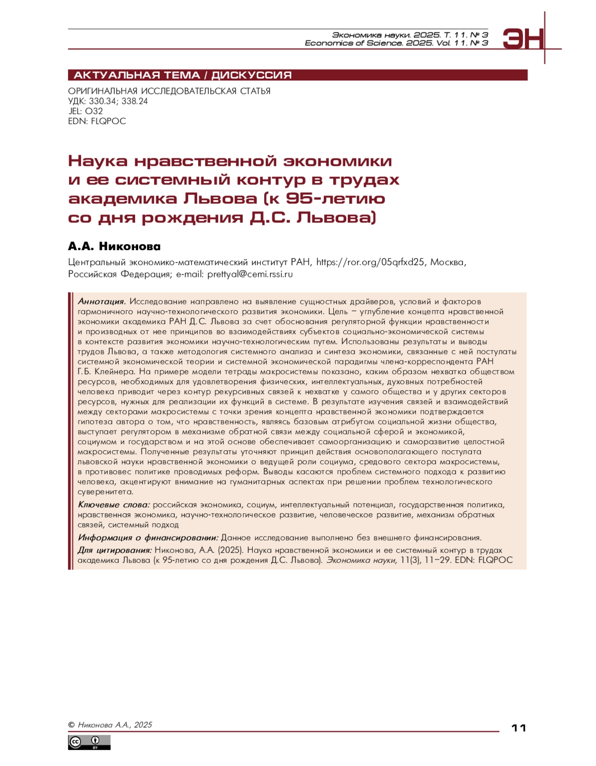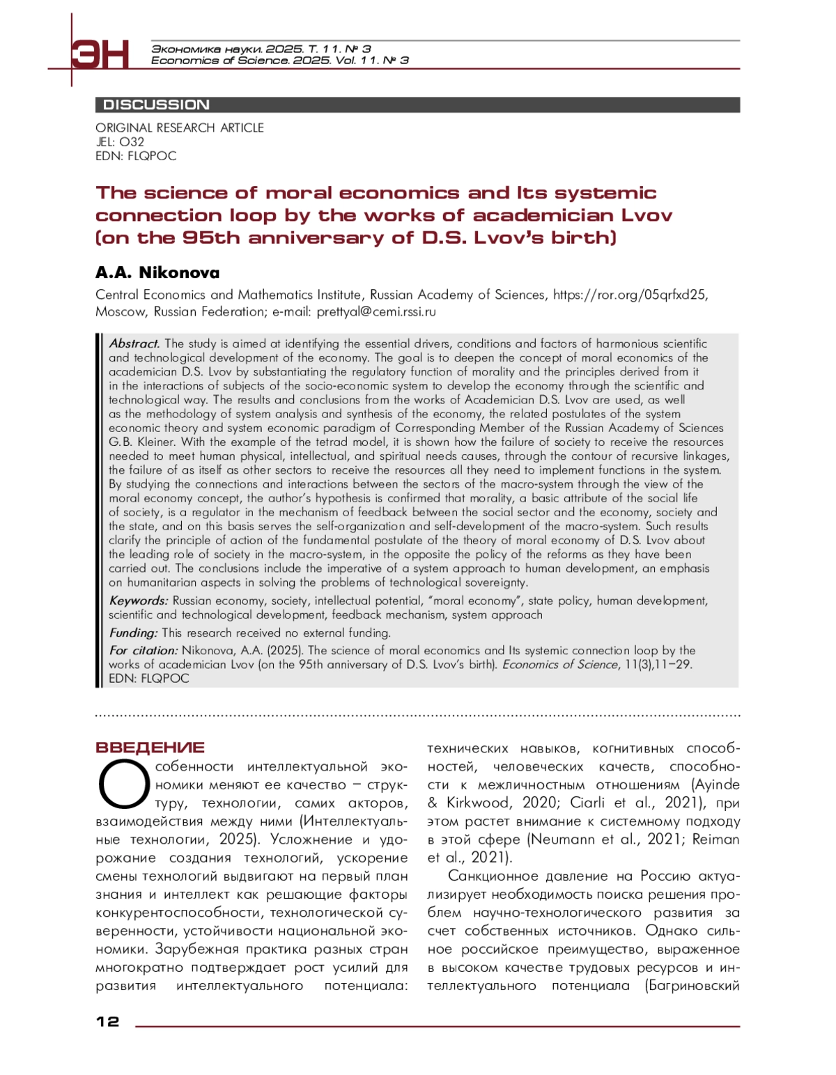 30. Никонова, А.А. (2025). Онтологическая сущность понятия научной школы в интеллектуальной экономике в свете феномена академика Д. С. Львова. В М. Ю. Карелина и др. (Ред.), Национальный экономический форум имени Д. С. Львова -«Львовский форум»: материалы Национального экономического форума / Министерство науки и высшего образования Российской Федерации. Государственный университет управления (С. 21-26). EDN: PQPFOI, https://doi.org/10.5281/zenodo.16953126