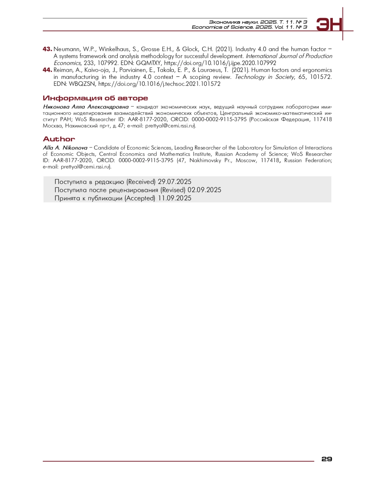 28. Никонова, А.А. (2023). Факторы НИОКР: чего недостает России для инноваций. Россия: тенденции и перспективы развития, 18(1), 330-340. EDN: GDICED, https://doi.org/10.5281/zenodo.8057395