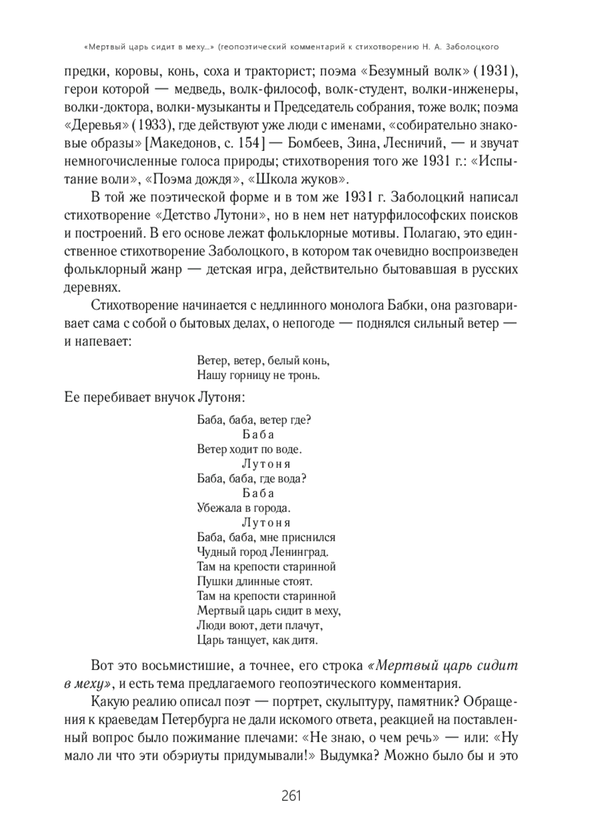 Статья: «МЕРТВЫЙ ЦАРЬ СИДИТ В МЕХУ…» (ГЕОПОЭТИЧЕСКИЙ КОММЕНТАРИЙ К СТИХОТВОРЕНИЮ Н. А. ЗАБОЛОЦКОГО «ДЕТСТВО ЛУТОНИ») (2025)