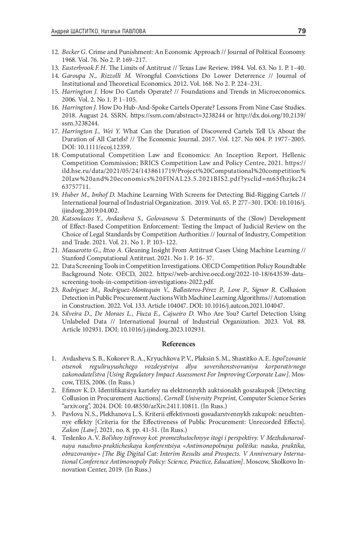 24. Silveira D., De Moraes L., Fiuza E., Cajueiro D. Who Are You? Cartel Detection Using Unlabeled Data // International Journal of Industrial Organization. 2023. Vol. 88. Article 102931. https://doi.org/10.1016/j.ijindorg.2023.102931.