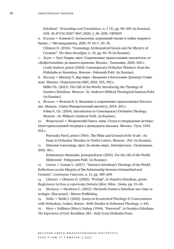 5. Иванова М. А. Перевод статьи профессора протоиерея Думитру Станилое “Вопросы и перспективы православного богословия” // Труды и переводы. 2020. № 1 (3). С. 96-105. 10.47132/2587- 7607_2020_1_96. DOI: 10.47132/2587-7607_2020_1_96 EDN: YBTBHT