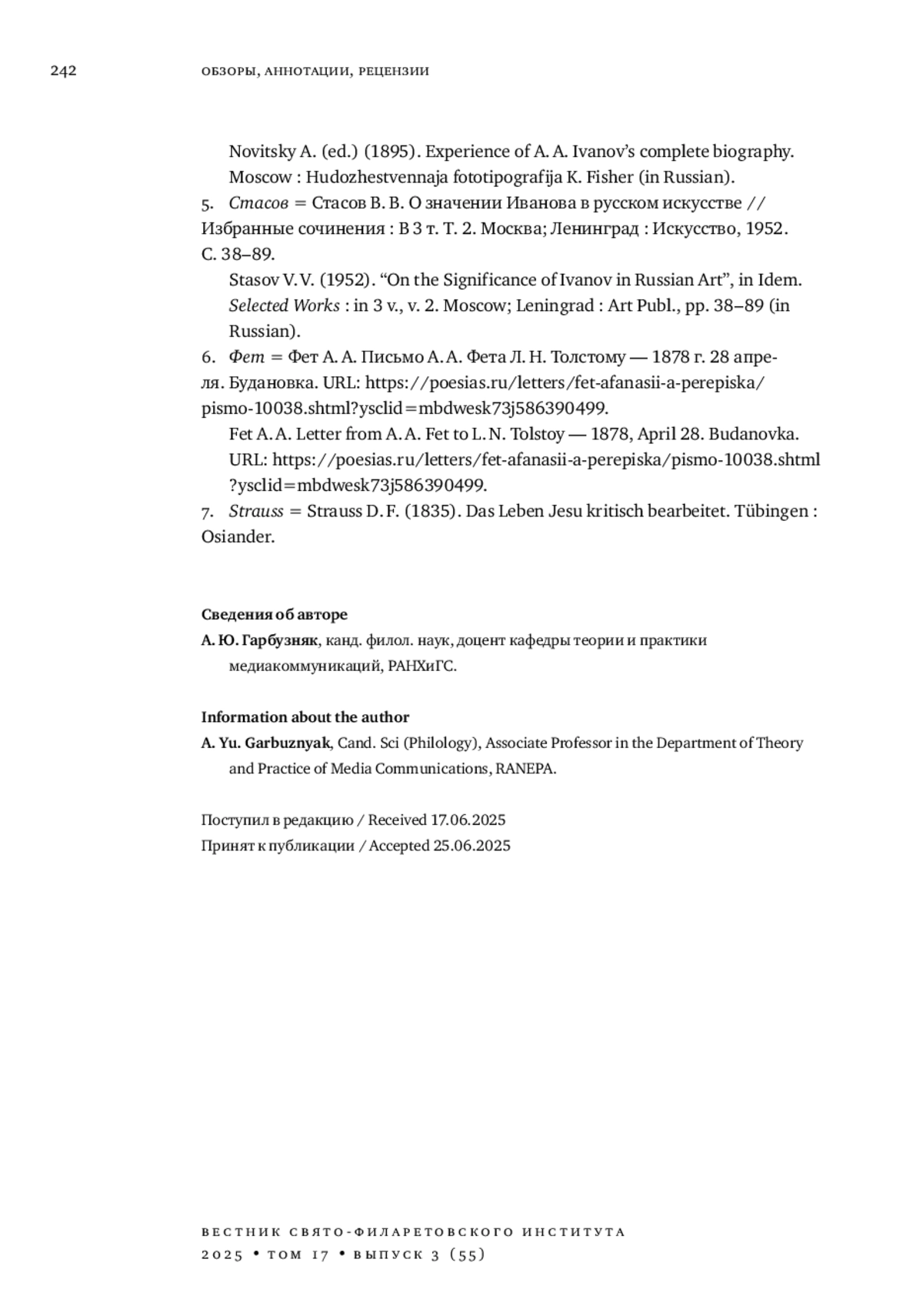 5. Стасов В. В. О значении Иванова в русском искусстве // Избранные сочинения: В 3 т. Т. 2. Москва; Ленинград: Искусство, 1952. С. 38-89.