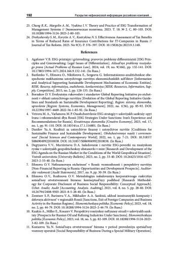 23. Chung R. K., Margolin A. M., Vyakina I. V. Theory and Practice of ESG Transformation of Management Systems // Экономическая политика. 2023. Т. 18. № 2. С. 80-103. https://doi.org/10.18288/1994-5124-2023-2-80-103.
