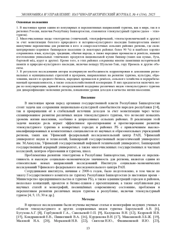 В настоящее время перед органами государственной власти Республики Башкортостан стоит задача как сохранения национально-культурной самобытности народов республики [14], так и превращения её в стабильный источник доходов за счет монетизации через четко спланированное развитие различных видов этнокультурного туризма, что позволит повысить уровень жизни населения, особенно в депрессивных сельских районах. В реализации этой задачи важную роль играет эффективное проектирование и прогнозирование развития этнокультурного туризма в конкретных городах и районах РБ с привлечением высококвалифицированных и компетентных специалистов из научных и образовательных учреждений региона, таких как Уфимский федеральный исследовательский центр РАН, Уфимский университет науки и технологий, Башкирский государственный педагогический университет им. М. Акмуллы, Уфимский государственный нефтяной технический университет, Башкирский государственный аграрный университет, а также многочисленных государственных и частных колледжей, центров образования и туризма, школ