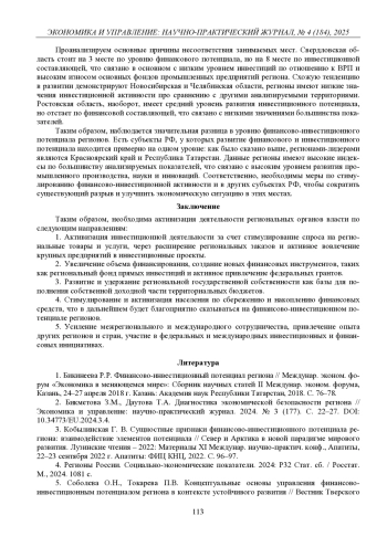 5. 	Соболева О.Н., Токарева П.В. Концептуальные основы управления финансово-инвестиционным потенциалом региона в контексте устойчивого развития // Вестник Тверского государственного университета. Серия: Экономика и управление. 2023. № 1(61). С. 84-92. DOI: 10.26456/2219-1453/2023.1.084-092 EDN: PSPATD