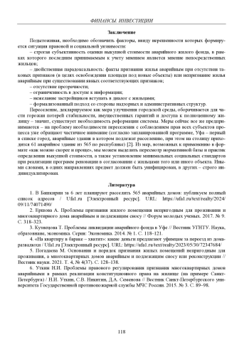 3. 	Кузнецова Т. Проблемы ликвидации аварийного фонда в Уфе // Вестник УГНТУ. Наука, образовнаие, экономика. Серия: Экономика. 2014. № 1. С. 118-121.