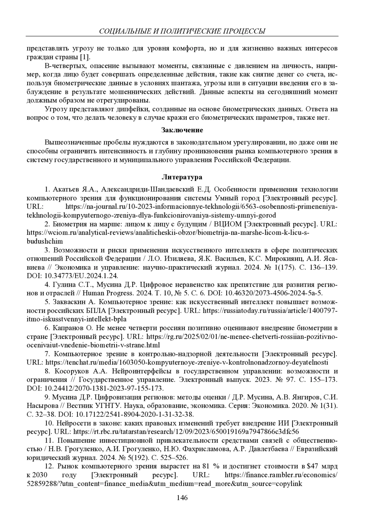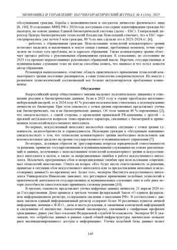 6. Капранов О. Не менее четверти россиян позитивно оценивают внедрение биометрии в стране [Электронный ресурс]. URL: https://rg.ru/2025/02/01/ne-menee-chetverti-rossiian-pozitivno-ocenivaiut-vnedenie-biometrii-v-strane.html.