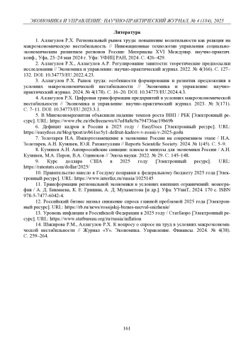 3. 	Аллагулов Р.Х. Рынок труда: особенности формирования и развития предложения в условиях макроэкономической нестабильности // Экономика и управление: научно-практический журнал. 2024. № 4(178). С. 16-20.  DOI: 10.34773/EU.2024.4.3