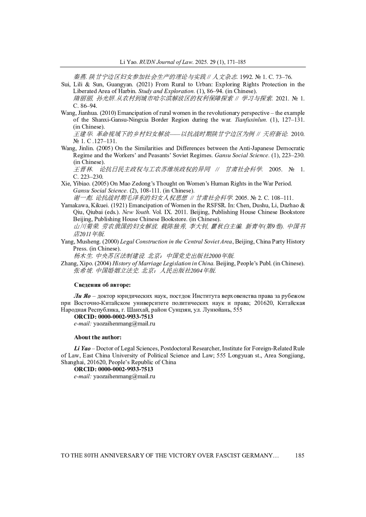 24. 	隋丽丽, 孙光妍.从农村到城市哈尔滨解放区的权利保障探索 // 学习与探索. 2021. № 1. С. 86-94.