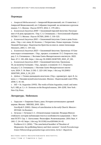 2. Пучкова С. С. “Огласительные гомилии” Феодора Мопсуестийского: история публикации текста и особенности содержания // Вестник ПСТГУ. Сер. 1: Богословие. Философия. Религиоведение. 2016. Вып. 4 (66). С. 24-43. DOI: 10.15382/sturI201666.24-43 EDN: WJBHOL