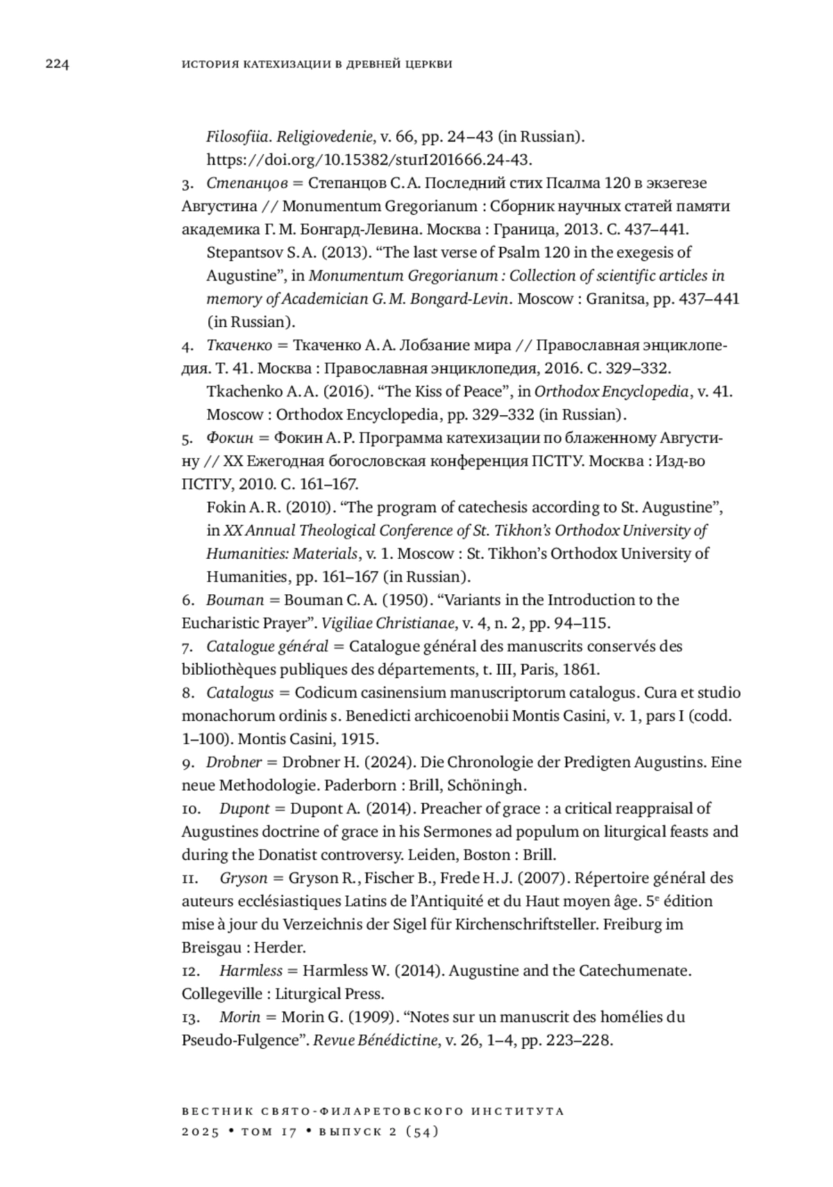 5. Фокин А. Р. Программа катехизации по блаженному Августину // XX Ежегодная богословская конференция ПСТГУ. Москва: Изд-во ПСТГУ, 2010. С. 161-167. EDN: UUYGIL