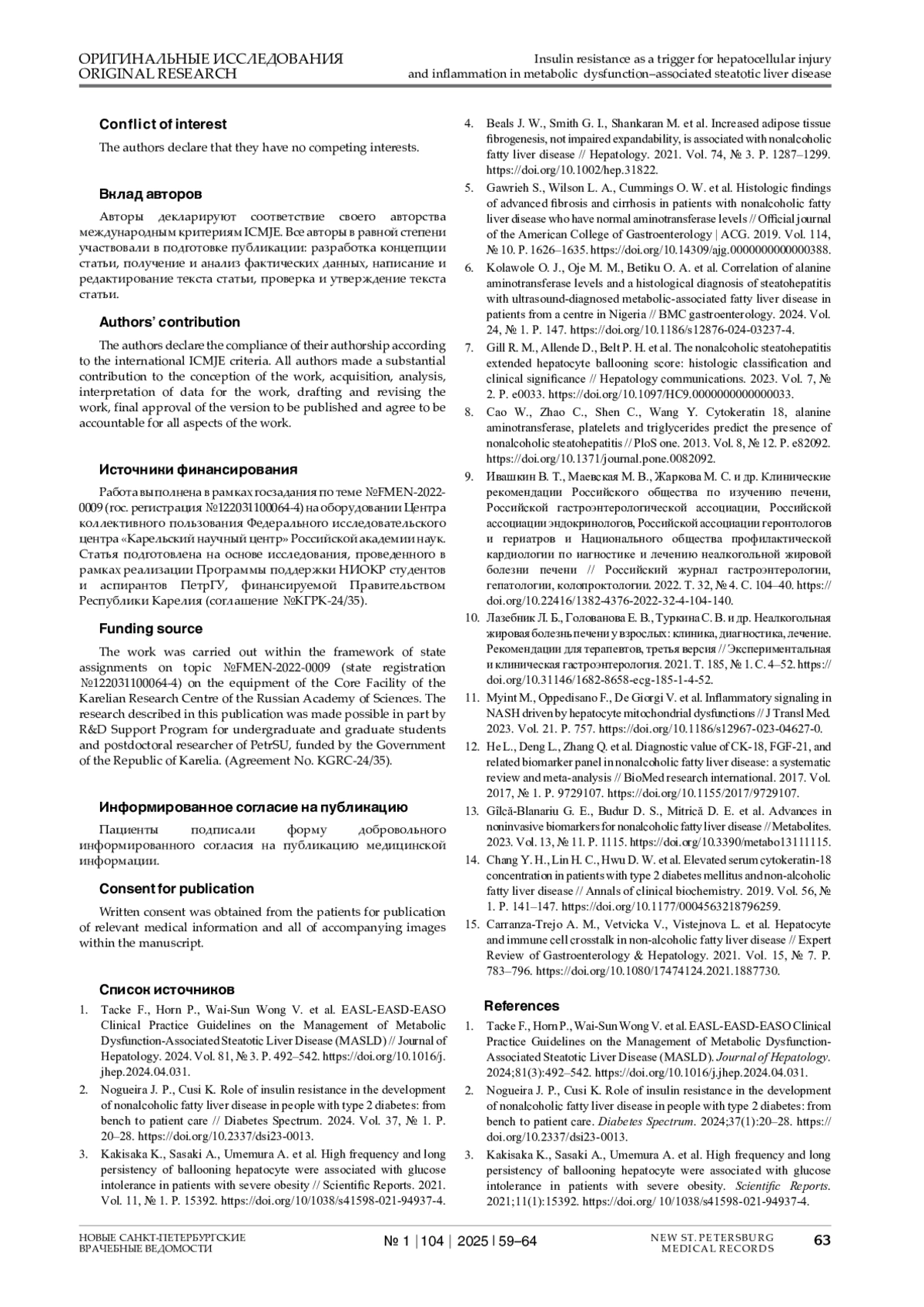 3. Kakisaka K., Sasaki A., Umemura A. et al. High frequency and long persistency of ballooning hepatocyte were associated with glucose intolerance in patients with severe obesity // Scientific Reports. 2021. Vol. 11, № 1. P. 15392. https://doi.org/10/1038/s41598-021-94937-4.