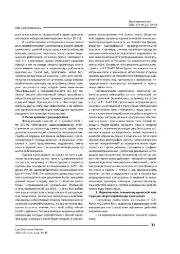 9. Душакова Л. А. Общественная нравственность как объект государственно-правовой охраны / Л. А. Душакова, Е. В. Миллеров // Юридический мир. - 2024. - № 10. - С. 30-33. - https://doi.org/10.18572/1811-1475-2024-1030-33.