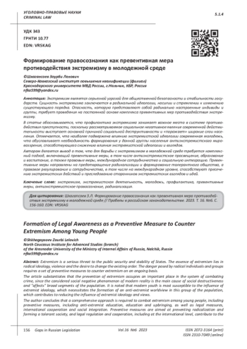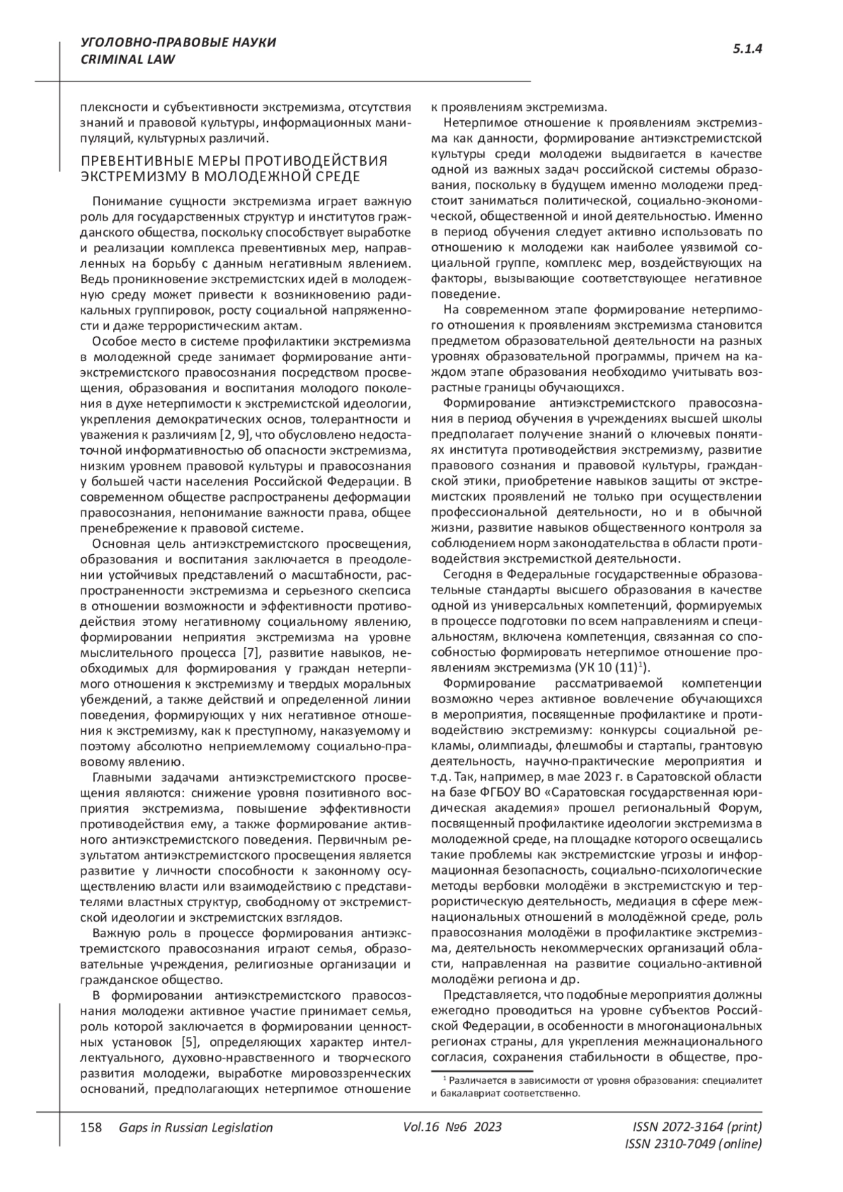 4. Зорина Н.С. О факторах и профилактике экстремизма в молодежной среде // Закон и право. 2021. № 11. EDN: SALEIK