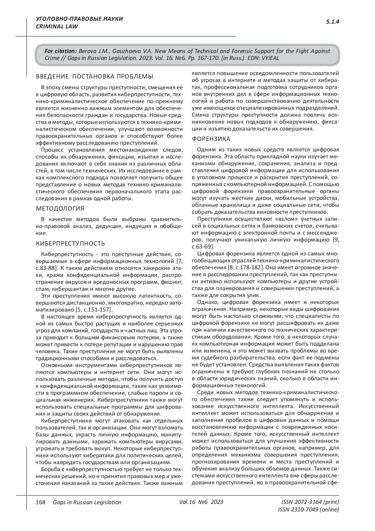 5. Долженко Н.И., Ярощук И.А. Киберпреступность как одна из ключевых проблем современности // Правовая парадигма. 2020. Т. 19. № 1. С.151-157. EDN: CAZUTZ