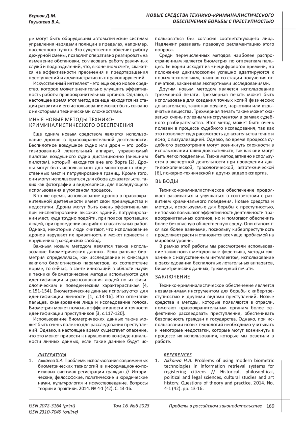 4. Гаужаева В.А., Лифанова Л.Г. Биометрическая идентификация в криминалистике // Аграрное и земельное право. 2023. № 3 (219). С. 151-154. EDN: XHLUNY
