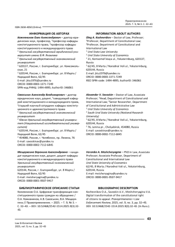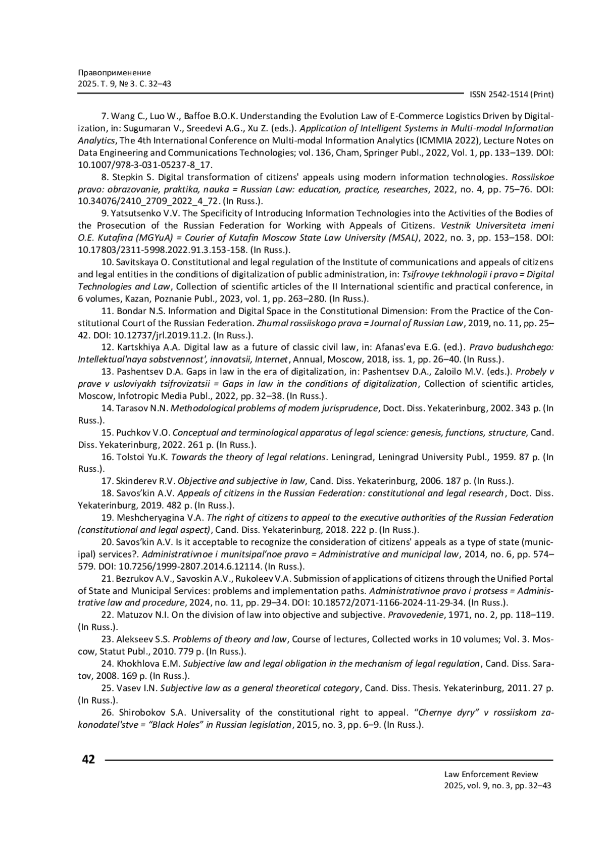 8. Степкин С. П. Цифровая трансформация обращений граждан с использованием современных информационных технологий / С. П. Степкин // Российское право: образование, практика, наука. - 2022. - № 4. - С. 75-76. - https://doi.org/10.34076/2410_2709_2022_4_72.