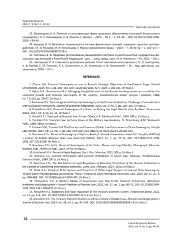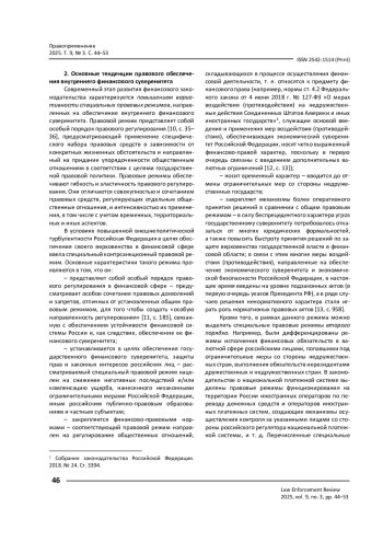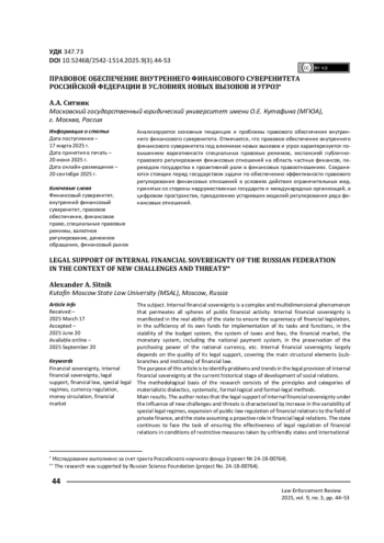 Статья: Правовое обеспечение внутреннего финансового суверенитета Российской Федерации в условиях новых вызовов и угроз (2025)