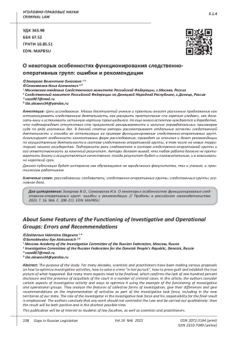 Цель исследования. Много десятилетий ученые и практики вносят различные предложения как оптимизировать следственную деятельность, как раскрыть преступление «по горячим следам», как доказать вину и установить истинную картину происшедшего. Но еще много аспектов нуждаются в доработке, что подтверждает отсутствие сто процентной раскрываемости и наличие оправдательных приговоров суда по ряду уголовных дел. В данной статье авторы рассматривают отдельные аспекты следственной деятельности и способы ее оптимизации на примере функционирования следственно-оперативных групп. Анализируют особенности коллективных форм расследования; приводят их отличия и дают рекомендации по осуществлению деятельности в составе следственно-оперативной группы, в том числе на новых территориях нашего государства. Подчеркнута роль следователя в составе следственно-оперативной группы и его ответственность за конечный результат. Авторы делают вывод, что любая работа должна не противоречить Закону и осуществляться качественно: тогда результат будет и положительным, и в максимально короткий срок. Данная публикация будет интересна как обучающимся на юридических факультетах, так и ученым, и практическим работникам.
