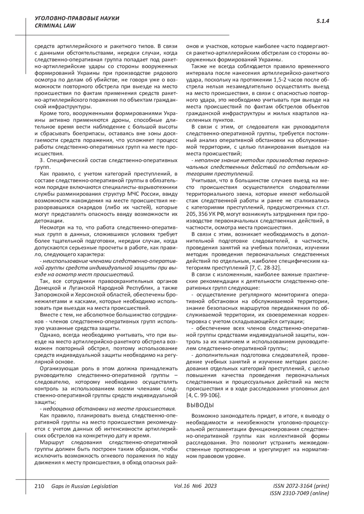 7. 	Шадрин В.С. Следователь как участник уголовного процесса на рубеже третьего десятилетия применения УПК РФ // Российский следователь. - 2023. - № 4. - С. 28-32. EDN: EUFHNJ