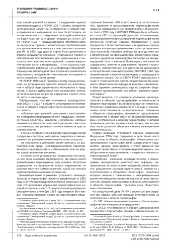Статья: ИСТОРИЯ РАЗВИТИЯ ОТЕЧЕСТВЕННОГО УГОЛОВНОГО ЗАКОНОДАТЕЛЬСТВА О ПОРНОГРАФИИ (2023)