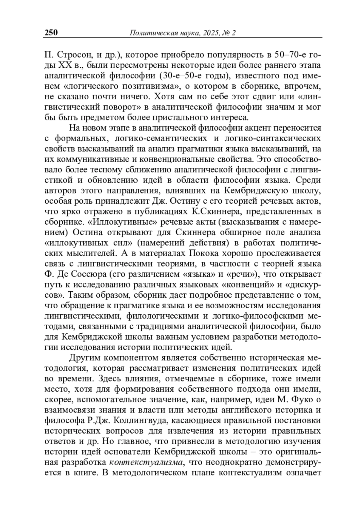 Рец. на кн.: Кембриджская школа. Теория и практика интеллектуальной истории / сост. Т. Атнашев, М. Велижев. – 2-е изд. – М.: Новое литературное обозрение, 2023. – 632 с. (Серия «Интеллектуальная история»)