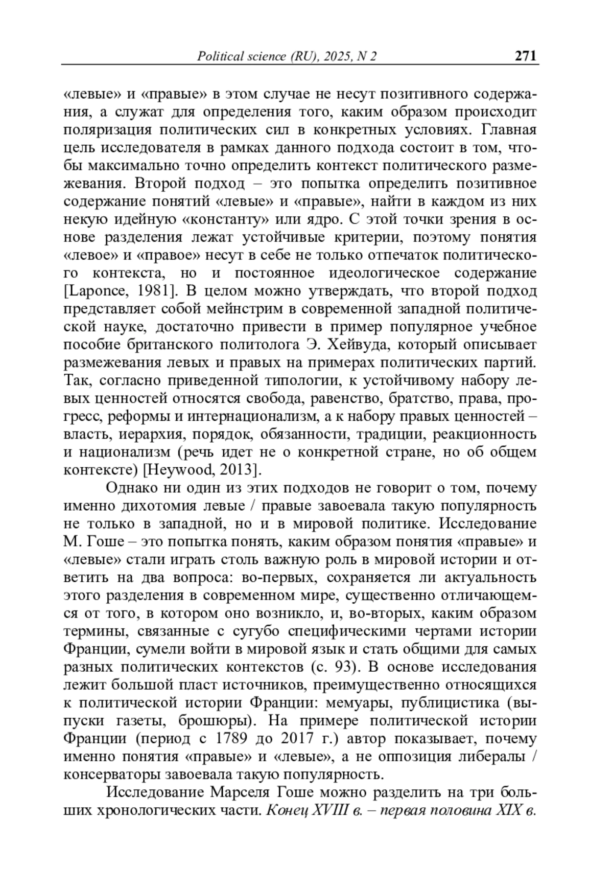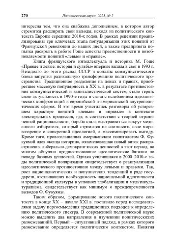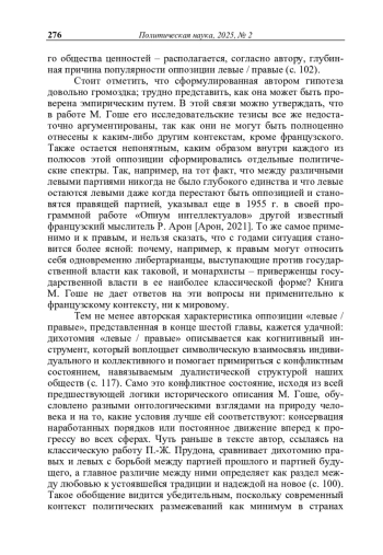 Рец. на кн.: Гоше М. Правые и левые: история и судьба / М. Гоше; пер. с фр. В. А. Мильчиной. – М.: Новое литературное обозрение, 2024. – 144 с. (Серия «Интеллектуальная история»)