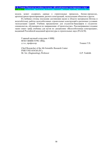 Издательство АСВ выпустило учебник для вузов «Железобетонные конструкции», состоящий из двух частей. Первая часть учебника «Расчет конструкций» содержит 388 страниц текста; вторая часть «Проектирование зданий и сооружений» – 380 страниц. Книга подготовлена коллективом авторов из организаций АО «ЦНИИПромзданий», НИУ МГСУ и РУТ (МИИТ).