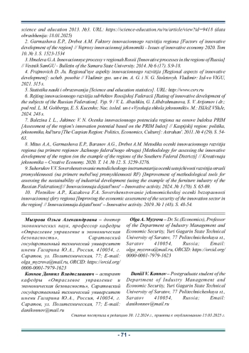 2. Гармашова Е.П., Дребот А.М. Факторы инновационного развития региона // Вопросы инновационной экономики. 2020. Том 10. № 3. С. 1523-1534. EDN: ROXAMF