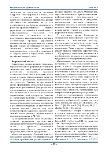 Статья: УПРАВЛЕНИЕ ИННОВАЦИОННЫМ ПРЕДПРИЯТИЕМ В КОНТЕКСТЕ ЦИФРОВОЙ ТРАНСФОРМАЦИИ: МАРКЕТИНГОВЫЙ ПОДХОД (2025)