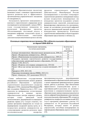 Ключевые фразы: проектный менеджмент, стратегический проект, ВЫСШЕЕ УЧЕБНОЕ ЗАВЕДЕНИЕ, методология, цифровизация