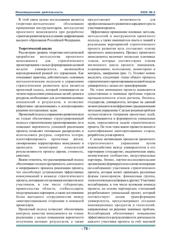 Статья: ПРОЕКТНЫЙ МЕНЕДЖМЕНТ В КОНТЕКСТЕ СТРАТЕГИЧЕСКОГО УПРАВЛЕНИЯ ВУЗОМ В УСЛОВИЯХ ЦИФРОВИЗАЦИИ (2025)