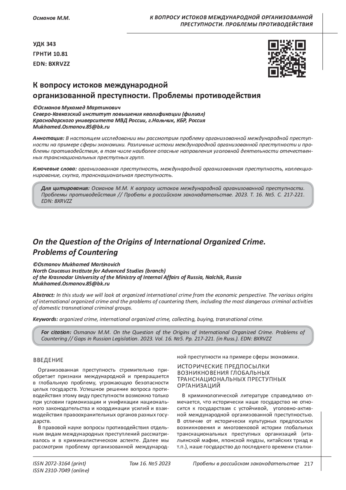 Fundamentals of the fight against organized crime: monograph / ed. Ovchinsky, V. E. Eminov, N. P. Yablokov. M.: INFRA-M, 1996. 400 p.
