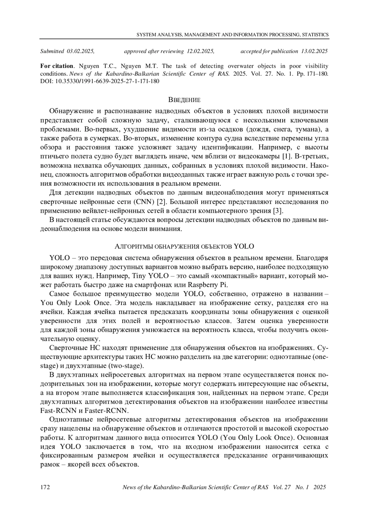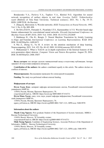 3. Bondarenko V.A., Pavlova V.A., Tupikov V.A., Kholod N.G. Algorithm for neural network recognition of surface objects in real time. Izvestiya TulGU. Tekhnicheskiye nauki [Bulletin of Tula State University. Technical sciences]. 2021. No. 1. Pp. 19-33. (In Russian). EDN: LBWTUH