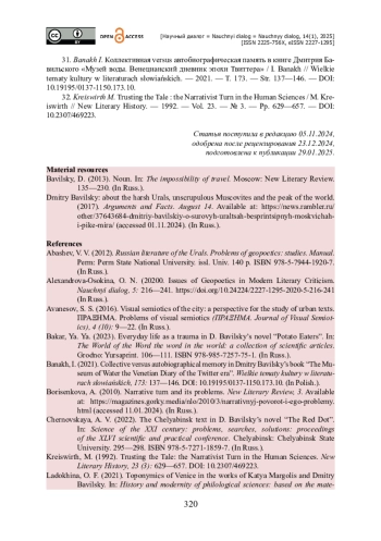 33. Banakh I. Коллективная versus автобиографическая память в книге Дмитрия Бавильского «Музей воды. Венецианский дневник эпохи Твиттера» / I. Banakh // Wielkie tematy kultury w literaturach słowiańskich. - 2021. - T. 173. - Str. 137-146. - https://doi.org/10.19195/0137-1150.173.10.