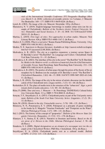 13. Медведева А. Р. Интерфейс города в романе «Красная точка» Д. Бавильского / А. Р. Медведева // Медиа в современном мире : сборник материалов 62-го Международного научного форума / отв. редактор А. А. Малышев. - Санкт-Петербург : Санкт-Петербургский государственный университет, 2023. - С. 152-154. - ISBN 978-5-00110-363-9.