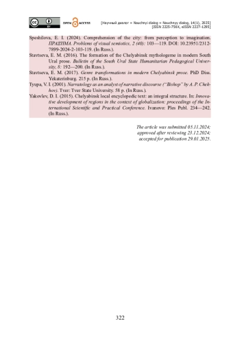 25. Смышляев Е. А. Челябинский поэтический текст как культурная модель / Е. А. Смышляев // Вестник ТГПУ. - 2014. - № 11 (152). - С. 115-118.
