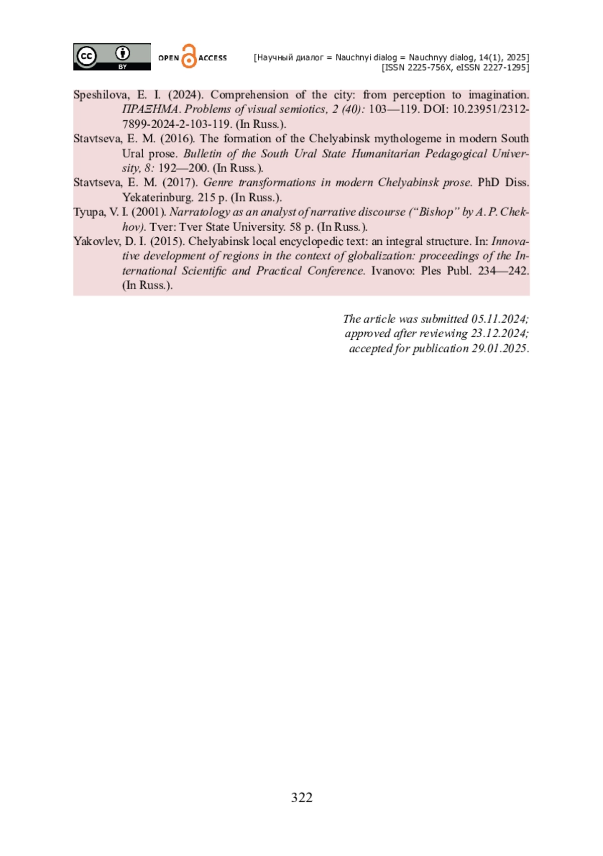 20. Семьян Т. Ф. Челябинская поэзия как часть уральского поэтического движения / Т. Ф. Семьян, Е. А. Смышляев // Вестник Южно-Уральского государственного университета. Серия : Лингвистика. - 2015. - Т. 12 (2). - С. 28-32.
