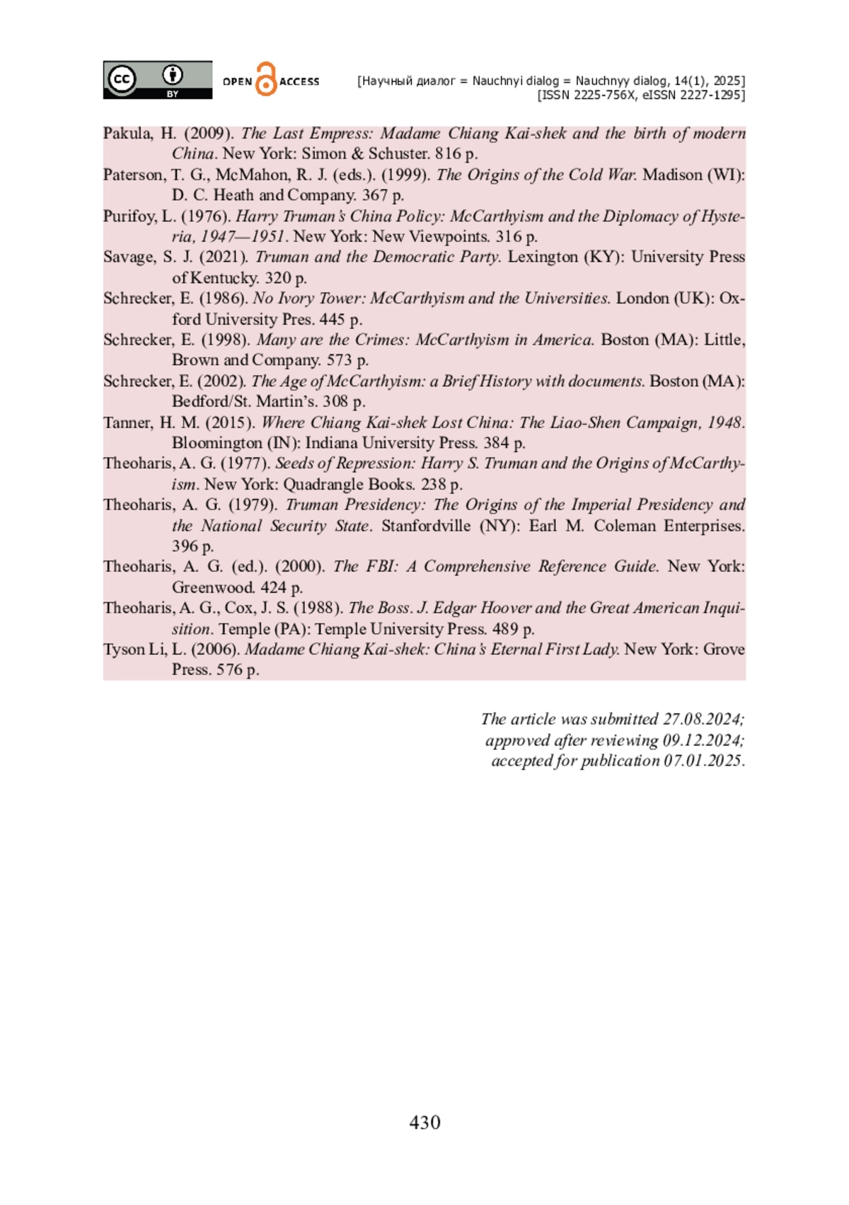 19. Klehr H. The Amerasia Spy Case : Prelude to McCarthysm / H. Klehr, R. Radosh. - Chapell Hill (NC) : The University of North Carolina Press, 1996. - 280 р.