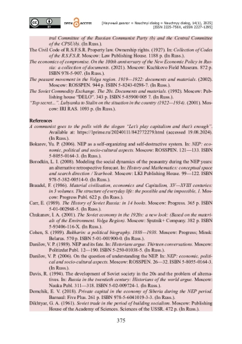 44. Кондрашин В. В. Отклик на статью М.Ю. Мухина «Сто лет изучения нэпа / В. В. Кондрашин // Время подводить итоги? Российская история. - 2020. - № 5. - С. 3-14.