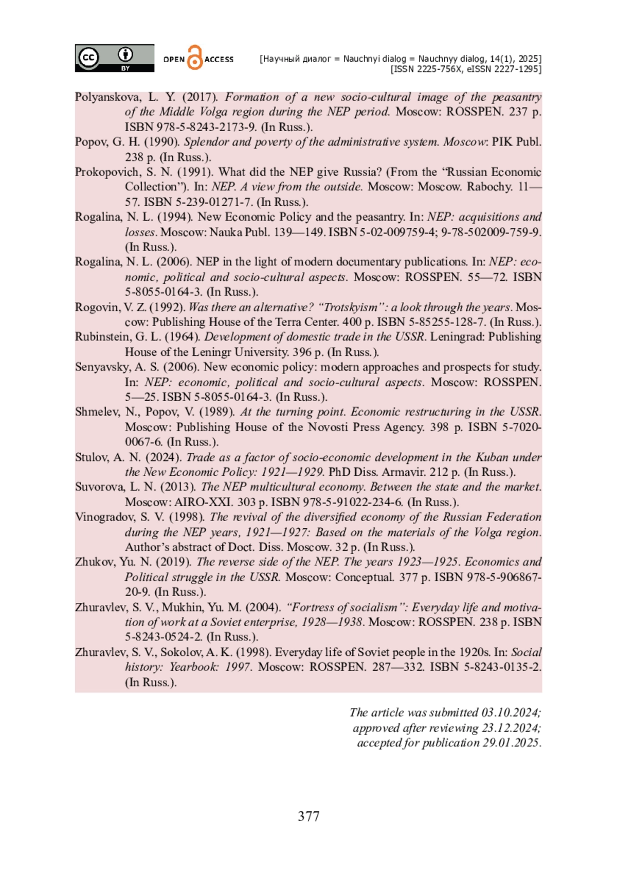 60. Рогалина Н. Л. Новая экономическая политика и крестьянство / Н. Л. Рогалина // НЭП : приобретения и потери. - Москва : Наука, 1994. - С. 139-149. - ISBN 5-02-009759-4; 9-78-502009-759-9.