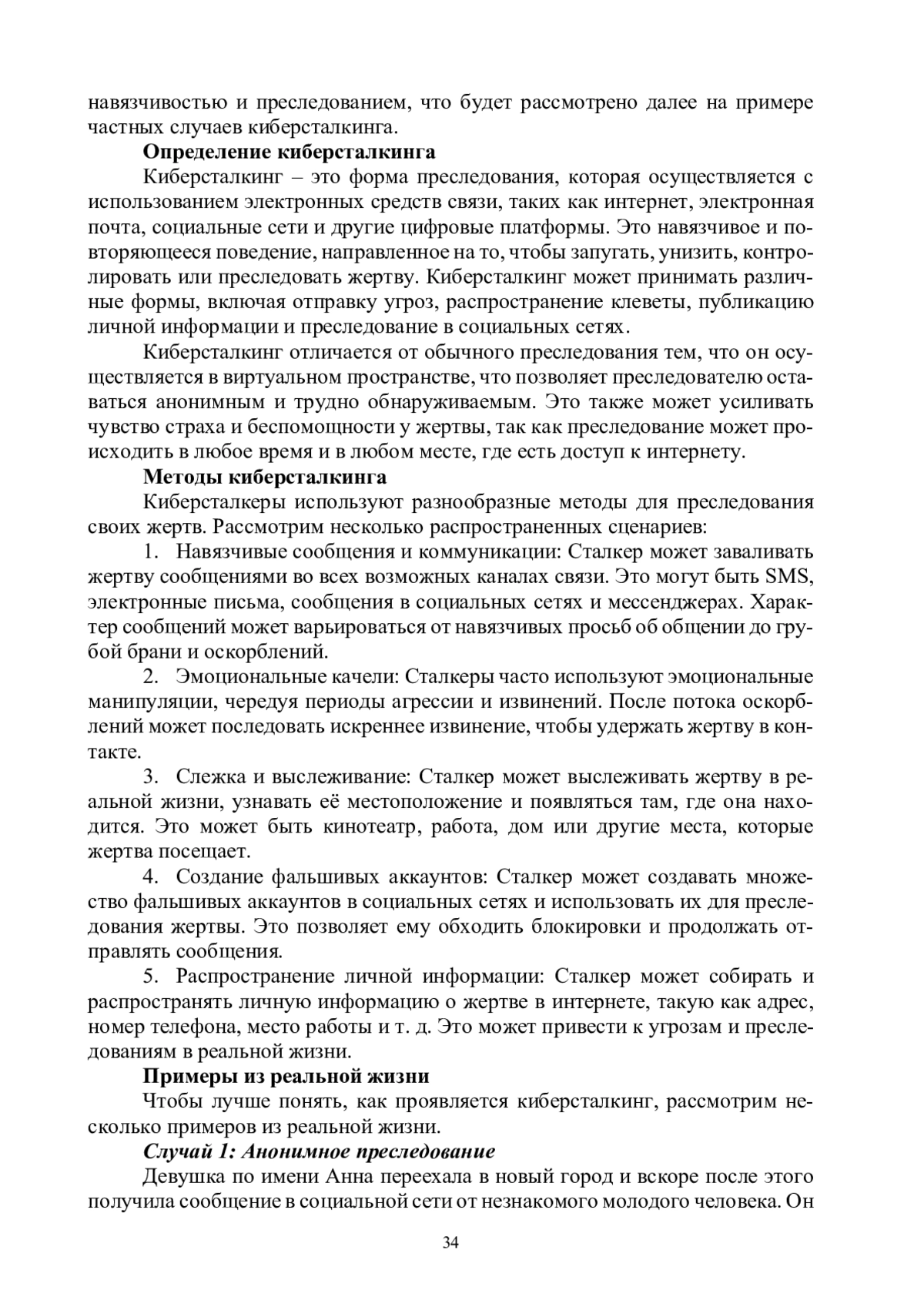 Ключевые фразы: киберсталкинг, преследование, домогательства, навязчивость, социальные сети, личная информация, безопасность, ЗАЩИТА, жертвы, последствия