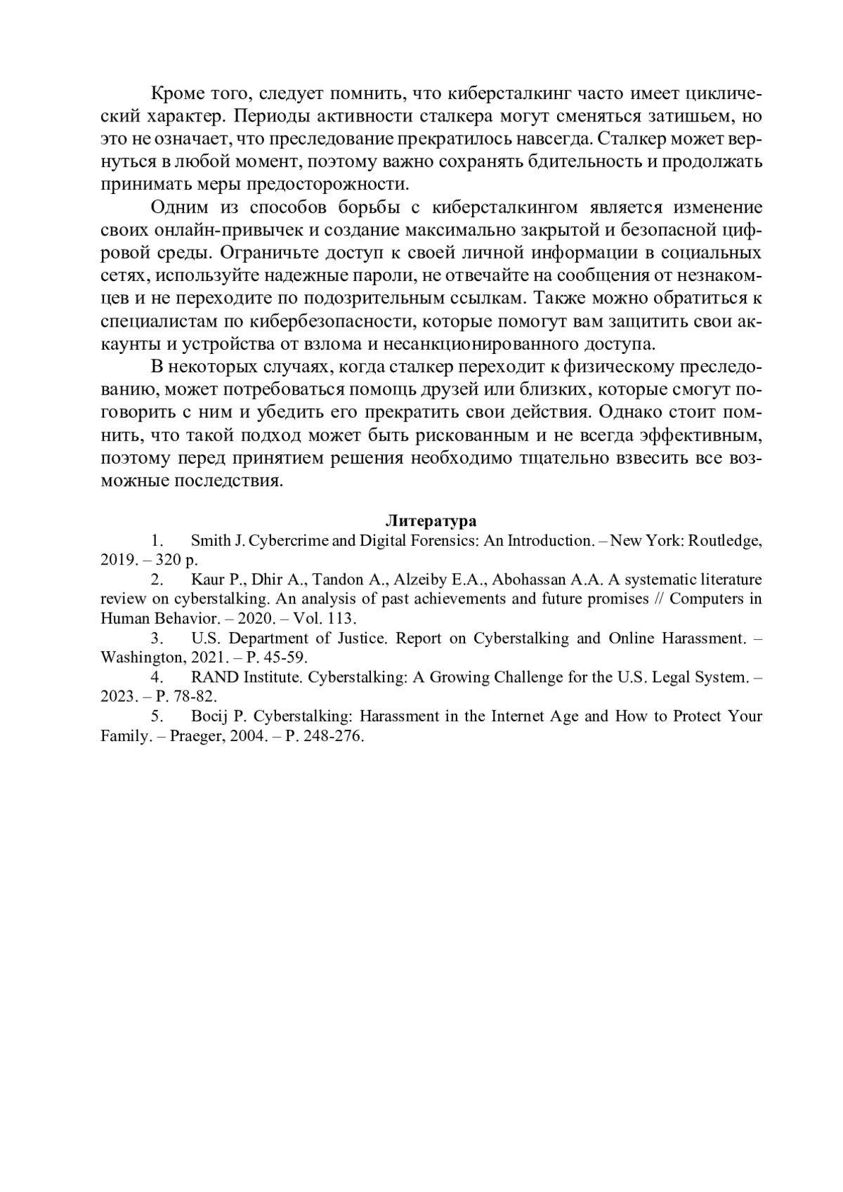 Голудин, И. А. Опасности киберсталкинга / И. А. Голудин // Научно-технологические инициативы: междисциплинарные аспекты : сборник научных трудов по материалам Международной научно-практической конференции, Белгород, 16 июня 2025 года. – Белгород: ООО Агентство перспективных научных исследований (АПНИ), 2025. – С. 33-37. – EDN WUGAYP.
