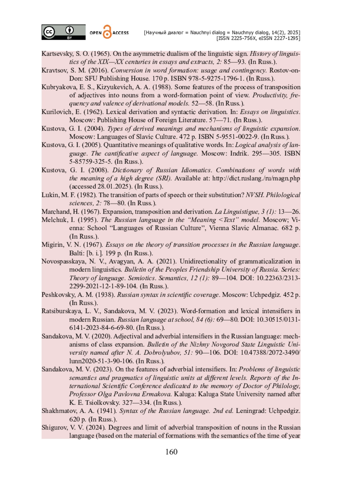 16. Кубрякова Е. С. Некоторые особенности процесса транспозиции прилагательных в существительные со словообразовательной точки зрения / Е. С. Кубрякова, А. А. Кизюкевич // Продуктивность, частотность и валентность деривационных моделей. - 1988. - С. 52-58.